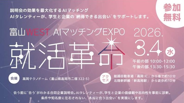 【出展企業募集!】合同企業説明会「富山WEST AIマッチングEXPO 就活革命」